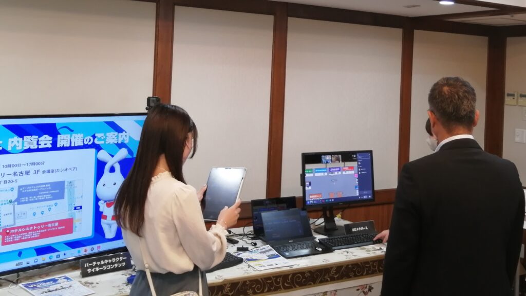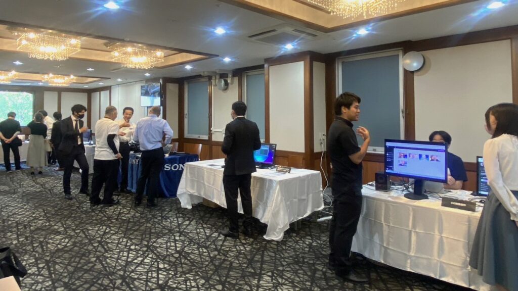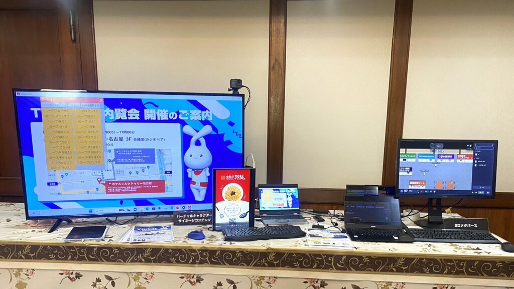 ホテルシルクトゥリー名古屋にて開催しました、TVSnext単独での内覧会では、「AIプレビューシステム」の他、2Dメタバースやバーチャルキャラクター、最新技術を使ったCG映像制作、これに加えてメディアプラス社のスタビライザーカメラ、Grass Valley社のクラウド編集ソフトウェア、Blackmagic Design社の配信機材、SONY社のクラウドソリューションといったバラエティに富んだ展示をいたしました。
