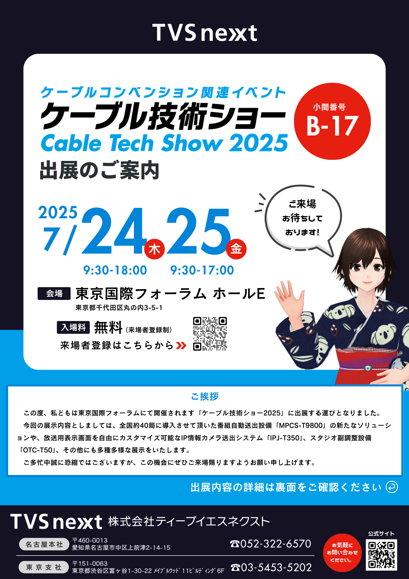 さてこの度、弊社は東京国際フォーラムにて開催されます「ケーブル技術ショー2025」に出展する運びとなりました。