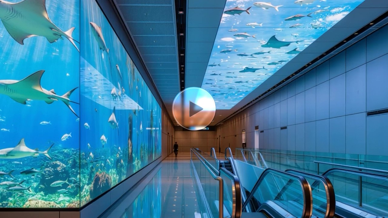 公共空間などにLEDで水族館や自然の癒し映像を。
